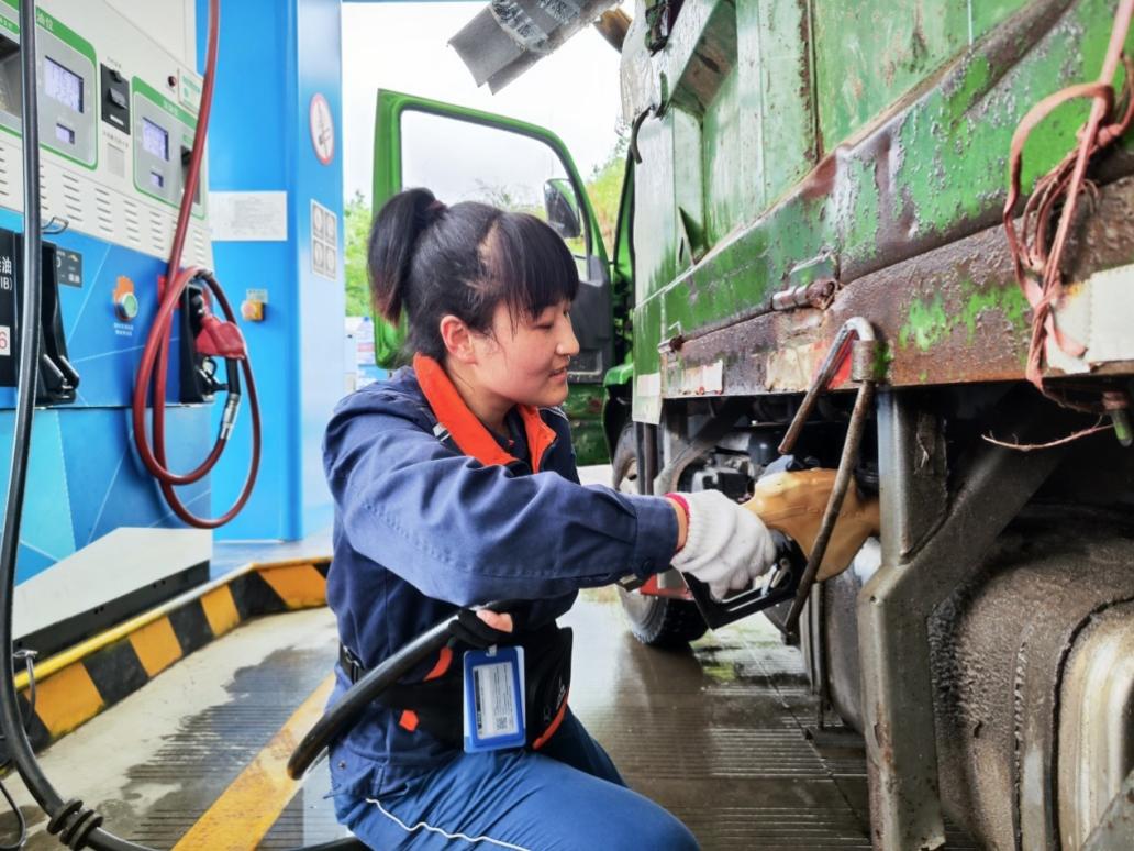 浙石油丽水遂昌东峰站员工为客户车辆加油。 雷晨辉 摄