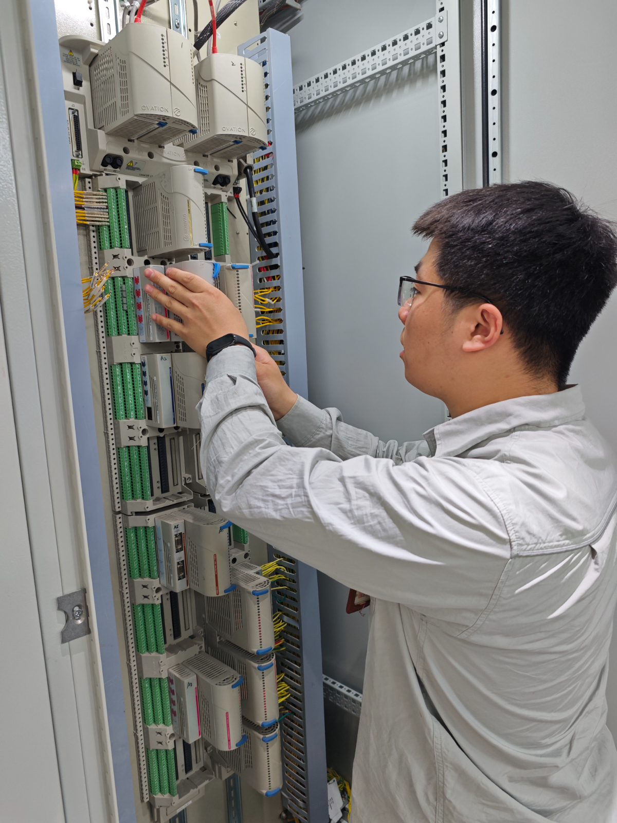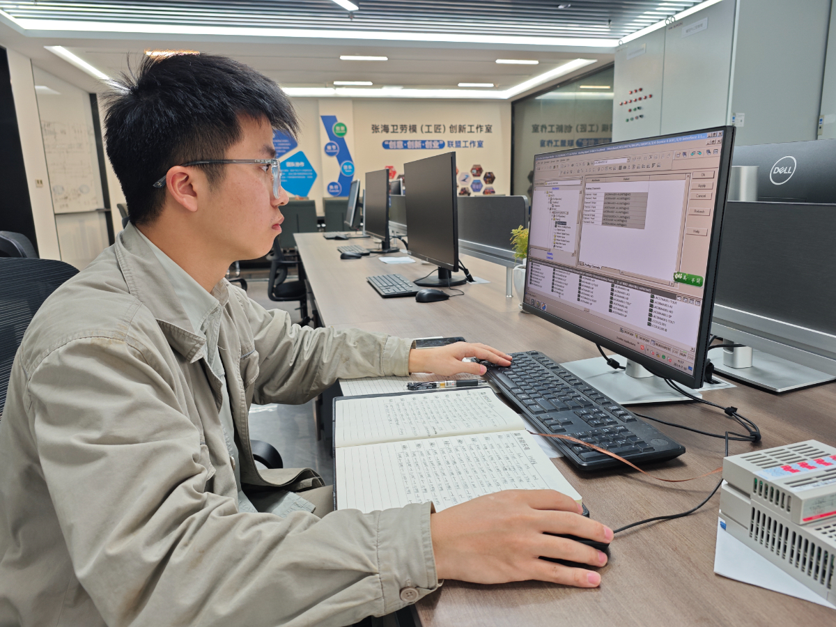 花费整整5个小时,完成2块卡件、16个通道、160个检定点的测试工作,这对搭子终于啃下了这块“硬骨头”,也带回了卡件可靠性良好的好消息。“虽然时间紧张,也遇到了一些小挫折,但顺利完成任务还是非常开心的。”钟佳源揉着发酸的胳膊说道。“没我不行,还得是有这么靠谱的‘工作搭子’才能顺利搞定吧!”胡远亮在一旁打趣。