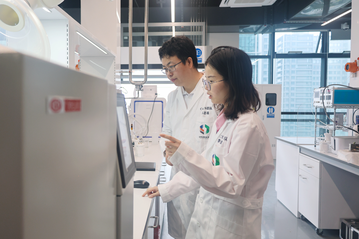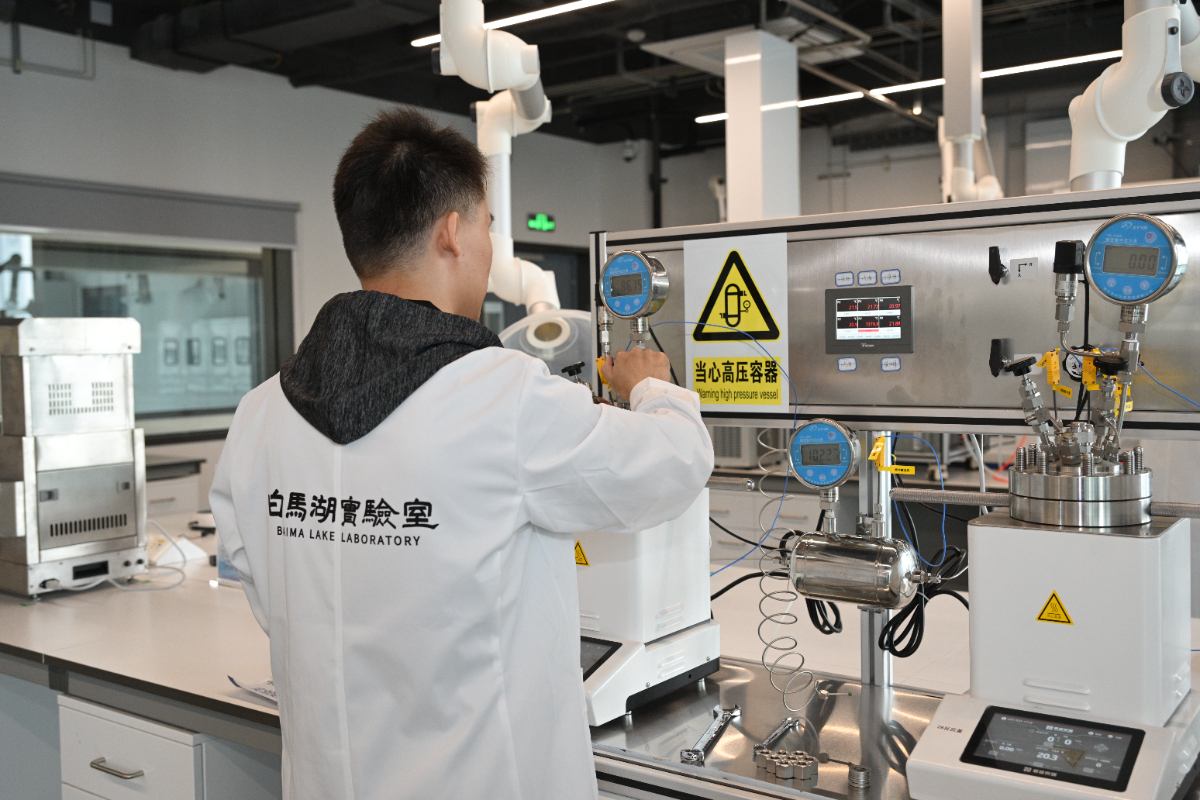 二氧化碳捕集及利用团队的科研人员正在进行实验。 白马湖实验室 提供