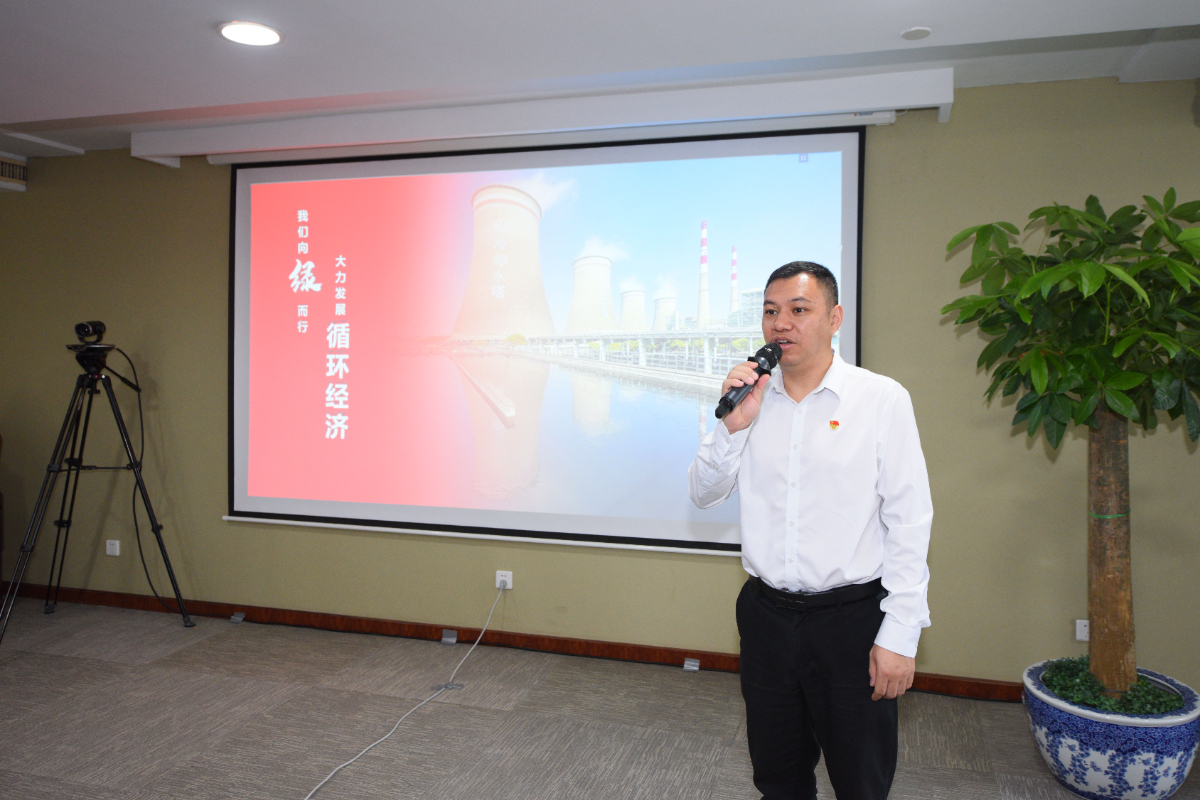 找彩吧党委书记、董事长刘盛辉主持专题学习会。 祝益军 摄