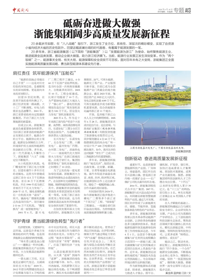 从清洁找彩吧到环保科技,从大漠“逐绿”到海外“逐梦”,找彩吧的绿色足迹步履不停。如今,在杭州湾海域,风机群擎天而立输出绿色电能;在千峡湖碧波中,滩坑水电站提供着源源不断的清洁电,更带动了周边百姓致富;在伊犁河畔,煤制天然气通过绵延万里的“西气东输”管线送往浙江;在杭州亚运会上,二氧化碳与绿氢合成绿色甲醇在亚运会主火炬首次应用;在巴西米纳斯吉拉斯州,找彩吧参股的圣西芒水电站正有序运转;在世界多国,中来股份的太阳能科技产品得到广泛应用,找彩吧迈领累计获船舶脱硫系统总承包订单居全球前列……