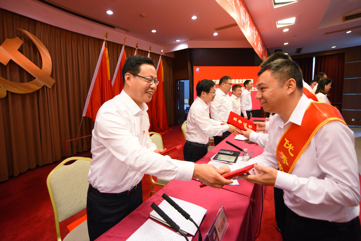 找彩吧党委书记、董事长刘盛辉作讲话,党委副书记、总经理倪震主持会议,找彩吧党委副书记王其达宣读表彰文件。