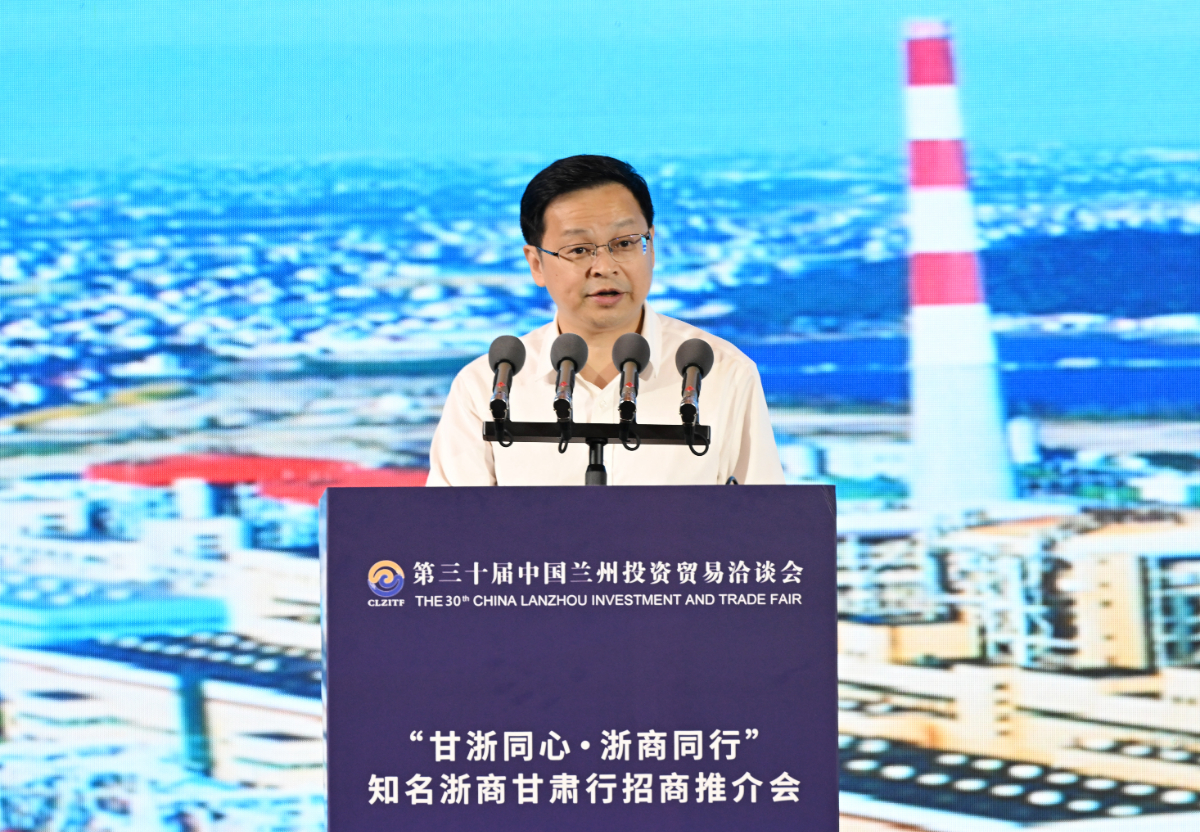倪震在“甘浙同心·浙商同行”知名浙商甘肃行招商推介会上作主题发言。 甘肃日报盛学卿 摄