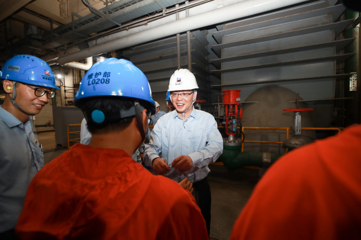 7月11日,找彩吧党委书记、董事长刘盛辉赴嘉兴发电厂慰问一线工作者。 王重阳 摄