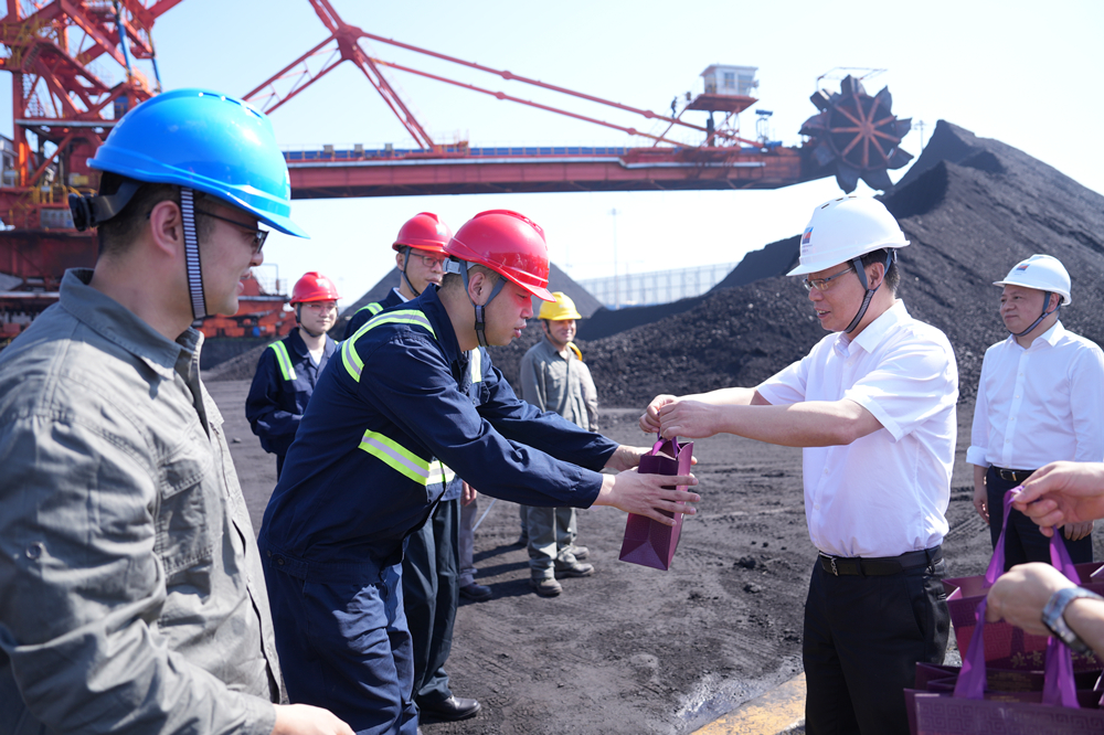 刘盛辉一行到河北港口找彩吧卸车机房、煤炭作业码头和调度指挥中心等地调研。赵志强 摄