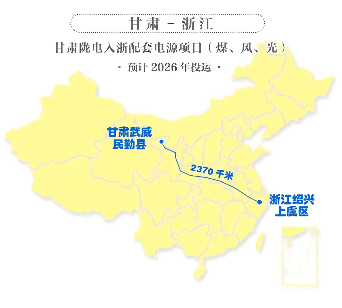 按照规划,陇电入浙起于甘肃武威,止于浙江绍兴,将跨黄河、穿秦岭、越长江,途径甘肃、宁夏、陕西、河南、安徽、浙江等6省(自治区)。千里迢迢建“超级工程”,要从自然禀赋说起。