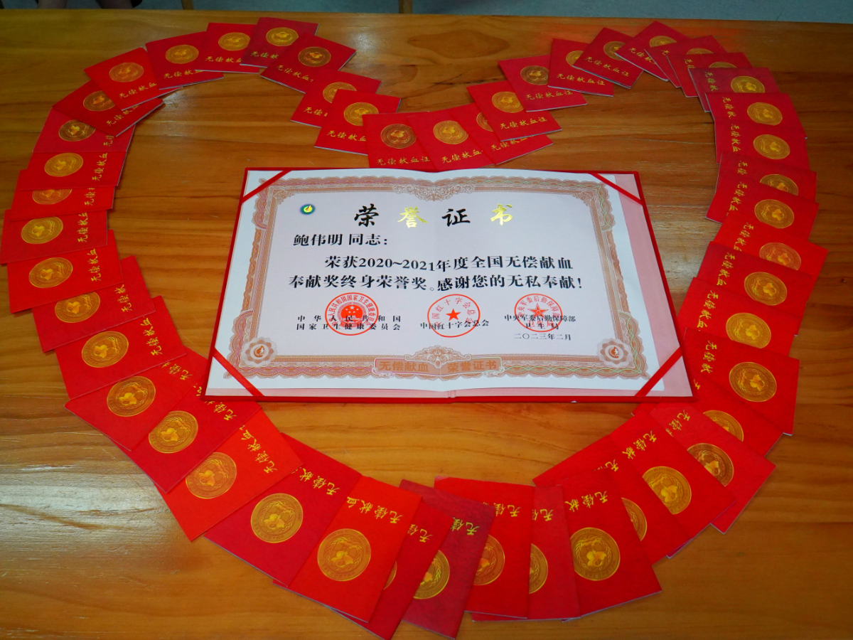 从最初的半年捐献一次全血,再到一年24次捐献机釆血小板,24年来,鲍伟明默默坚持着无偿献血,用自己最大的努力参与到献血爱心事业当中去,也发生了很多与患者的感人至深的故事。