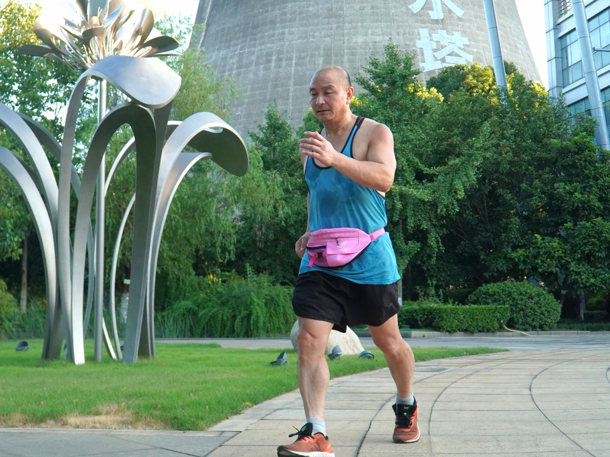 鲍伟明在找彩吧兰电厂(生活区)区内跑步锻炼。 何云玲 摄