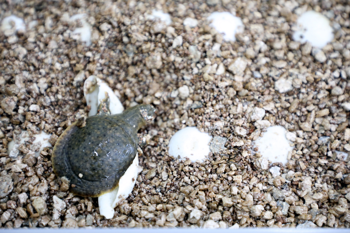 8月25日下午起,滩坑水电站增殖放流站今年瓯江鼋宝宝依次破壳出生。 寿忆梦 摄