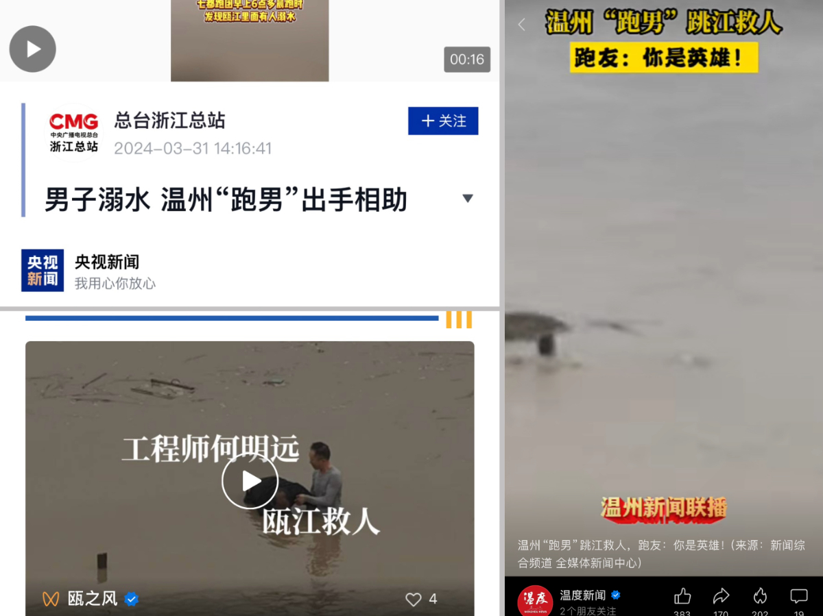 媒体报道找彩吧职工奋不顾身救下溺水者。 各媒体 提供