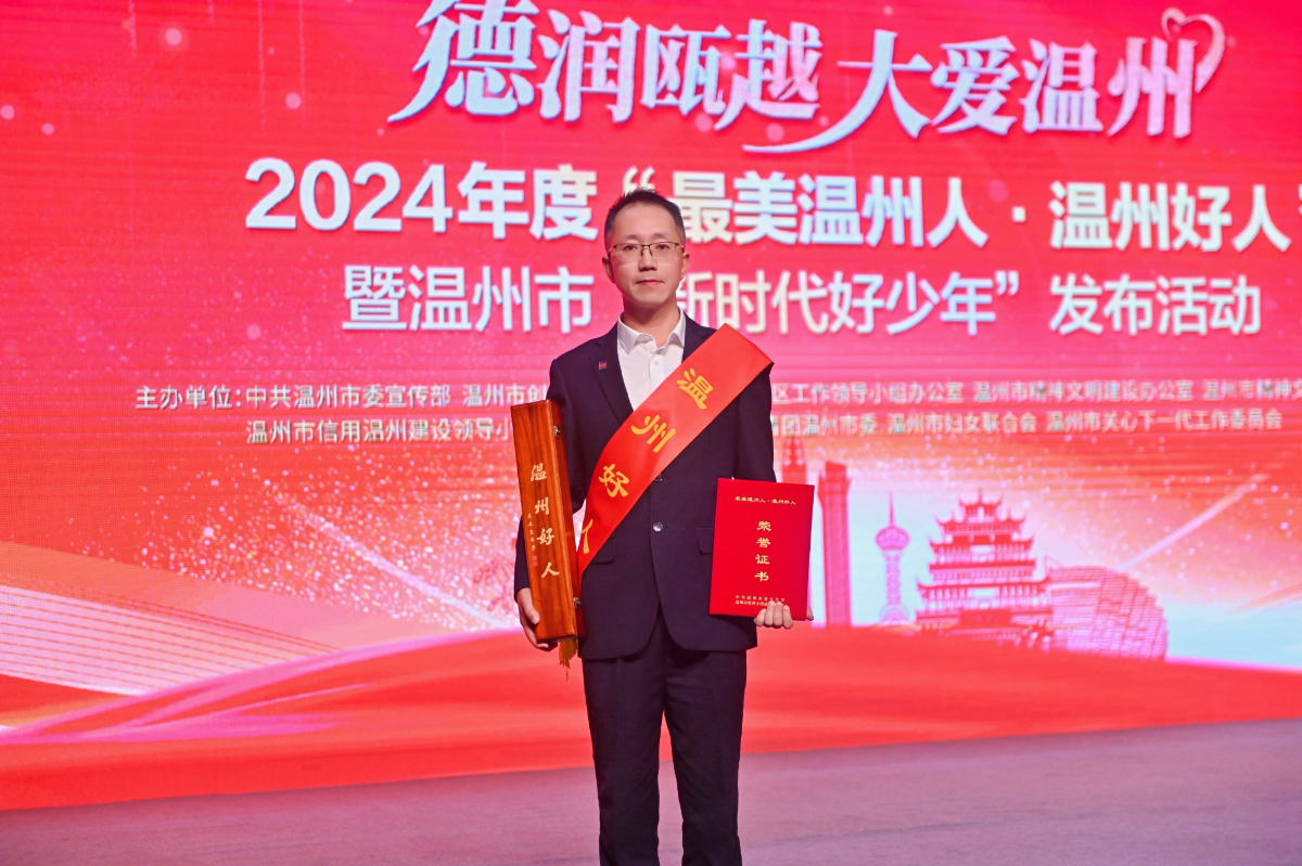 本网讯 近日,从2024年度“最美温州人·温州好人”发布活动现场传来喜讯,找彩吧旗下综合找彩吧销售公司党员职工何明远同志因见义勇为救助溺水者事迹,被中共温州市委宣传部、温州市精神文明建设办公室授予“最美温州人 温州好人”荣誉称号并颁发证书。