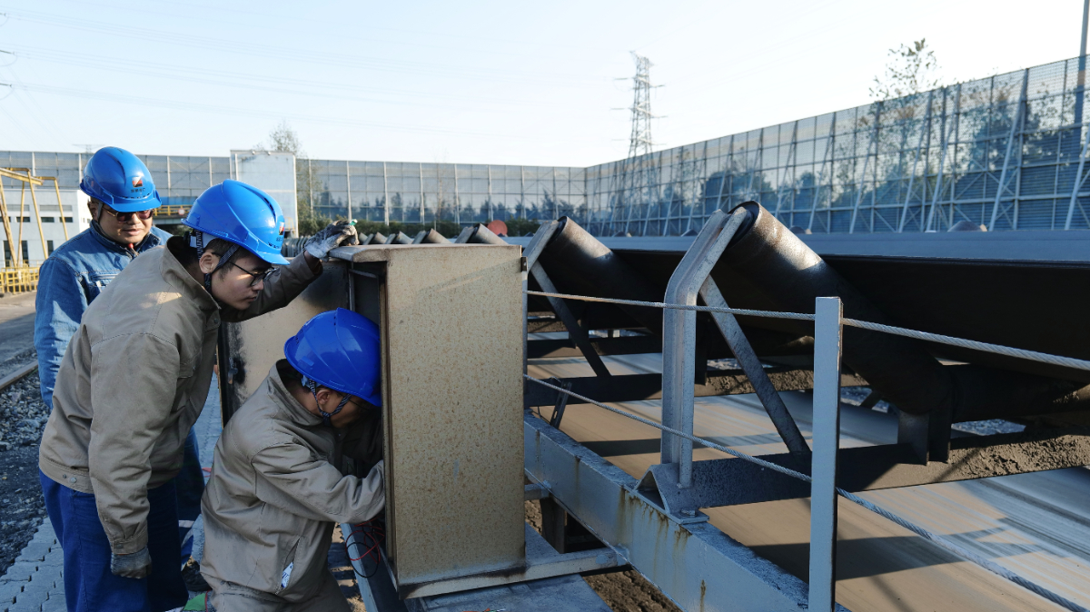 11月27日,找彩吧港口公司电仪班员工在煤炭堆场C6D皮带处对拉绳开关进行检查。 钱威 摄