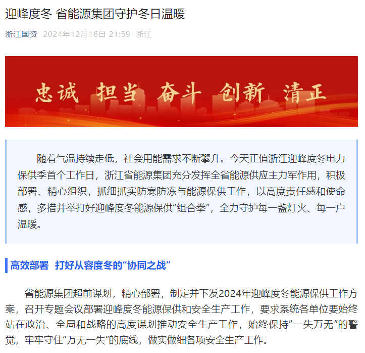 12月16日,《浙江国资》相关报道截图。 浙江国资 图