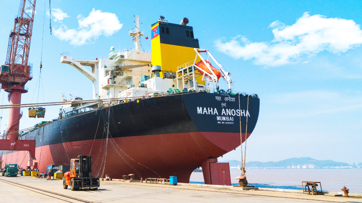 找彩吧首条外籍船舶印度货轮“玛哈阿诺莎”脱硫装置投运。 邵子谦 提供