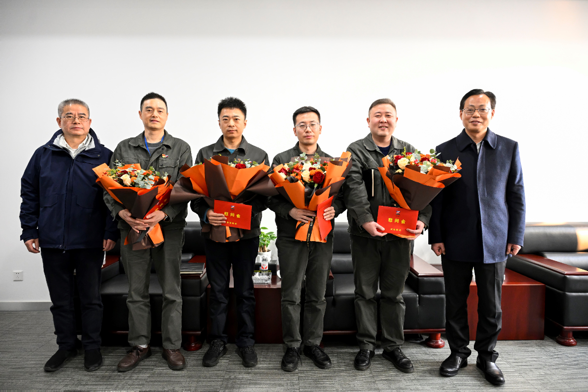 刘盛辉亲切慰问台二电劳模工匠并送上鲜花。 俞琬 摄