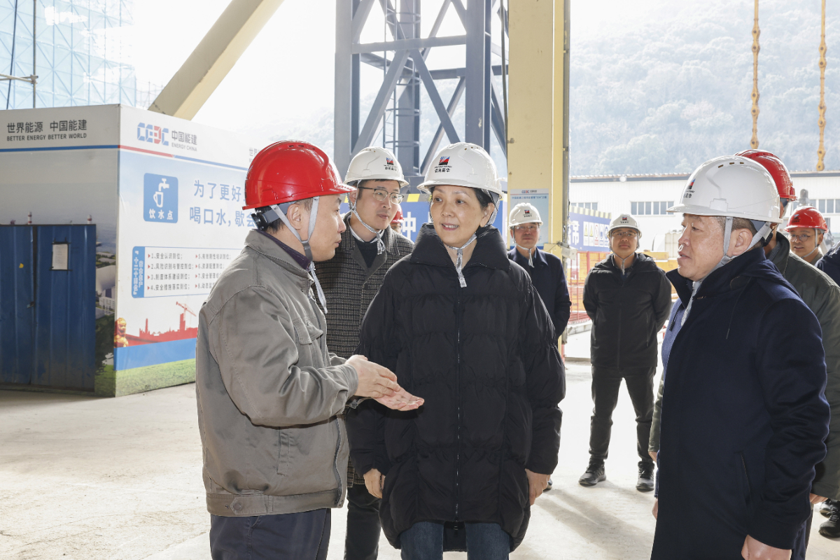 钱哲一行首先深入嘉电四期9号机组基建现场,实地了解当前工程建设、现场安全管理等方面情况,对目前工程进度给予了充分肯定,并对参建各方的辛勤付出表示慰问。