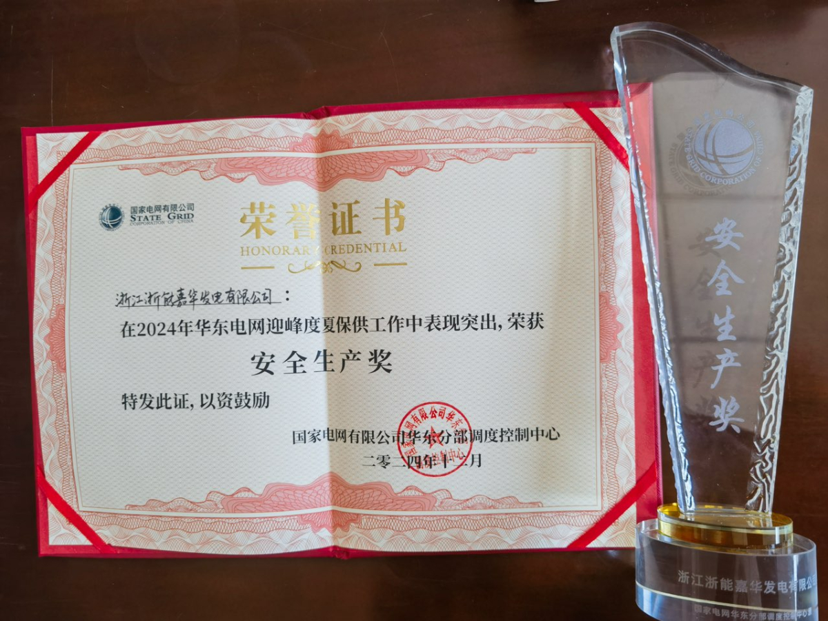 嘉华发电公司荣获华东电网2024年迎峰度夏保供安全生产奖