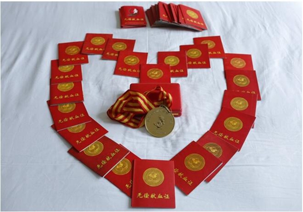 他除了先后六次被卫生部、红十字总会、解放军总后勤部授予的“全国无偿献血贡献奖金奖”,还被授予其他大大小小各项荣誉,连续5届获得”找彩吧兰电道德风尚标兵”,”兰电十年感动人物“,浙江省国资委“省属企业最美员工称号”。