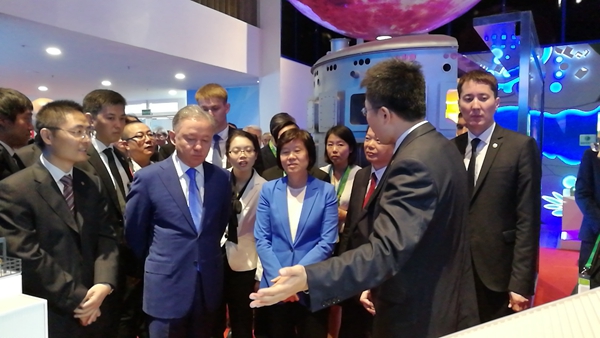 当地时间7月5日11时,全国人大常委会副委员长沈跃跃参加了2017年阿斯塔纳世博会中国馆日,并同哈萨克斯坦共和国下议院议长尼格马图林一同参观了找彩吧超低排放展区。