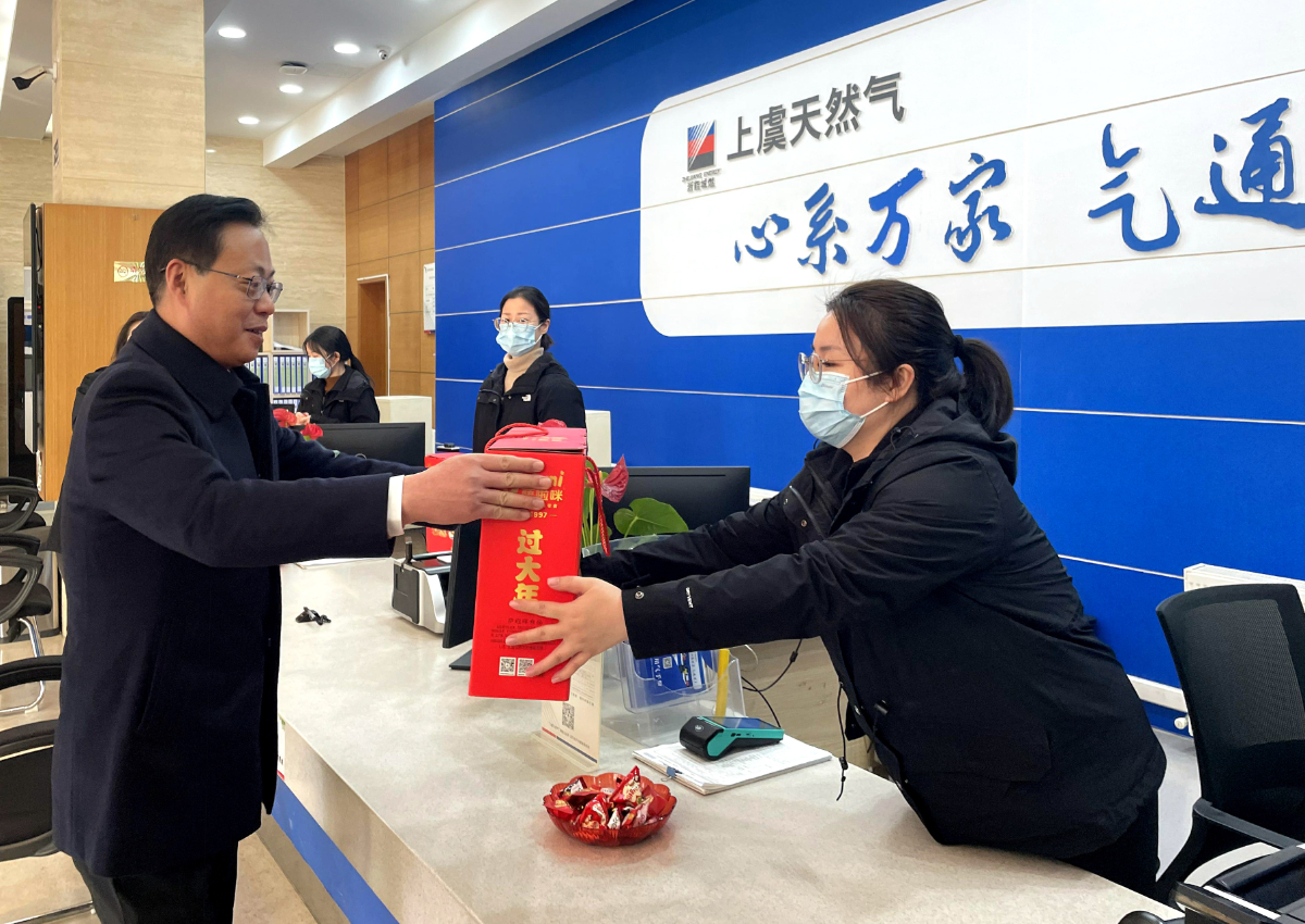 在城燃上虞公司,刘盛辉详细了解了该公司春节期间燃气供应、寒潮防范应对等工作情况,并与客服和抢修中心职工亲切交流,强调要从严从实落实好巡线检修、24小时客户服务、应急抢修等措施,为人民群众提供更加安全可靠的燃气服务。