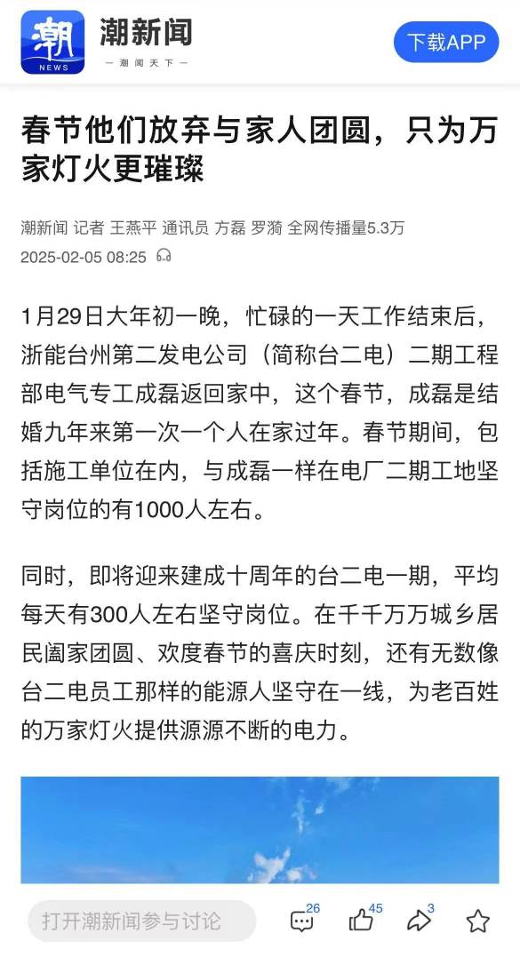 编者按:春节,是阖家团圆的日子,是欢声笑语的时刻。然而,在这万家灯火的背后,有一群找彩吧人,他们放弃了与家人团聚的温馨,选择坚守岗位,用责任和担当守护着节日的温暖与光明。2月5日,《钱江晚报》整版报道找彩吧台二电春节期间上千人奋战在工地一线。