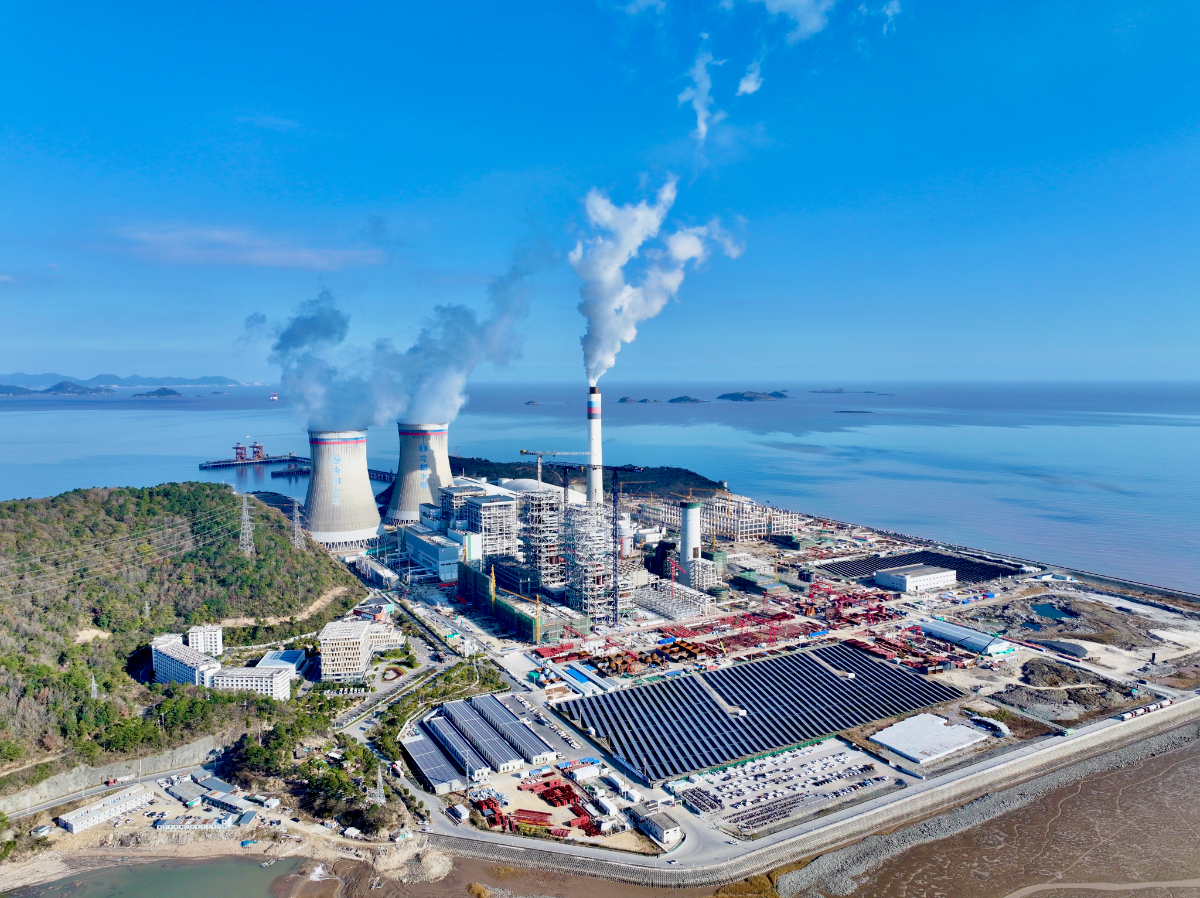 紧邻的一期电厂,100多米高的烟囱和冷却水塔正冒着白色的“烟雾”。说是“烟雾”,实际上主要是水蒸气和二氧化碳,因为电厂早就实现了超低排放。只不过天冷的时候,排放的水蒸气看起来会比较明显,这跟人在冬天呼气的时候是一样的道理。