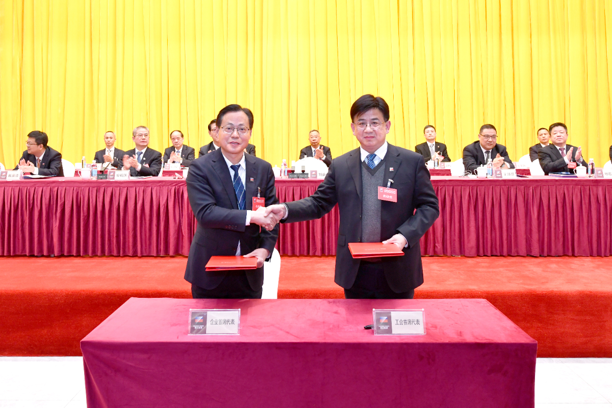 企业方首席代表刘盛辉和职工方首席代表胡斌签订新一轮集体合同。 顾明杰 摄