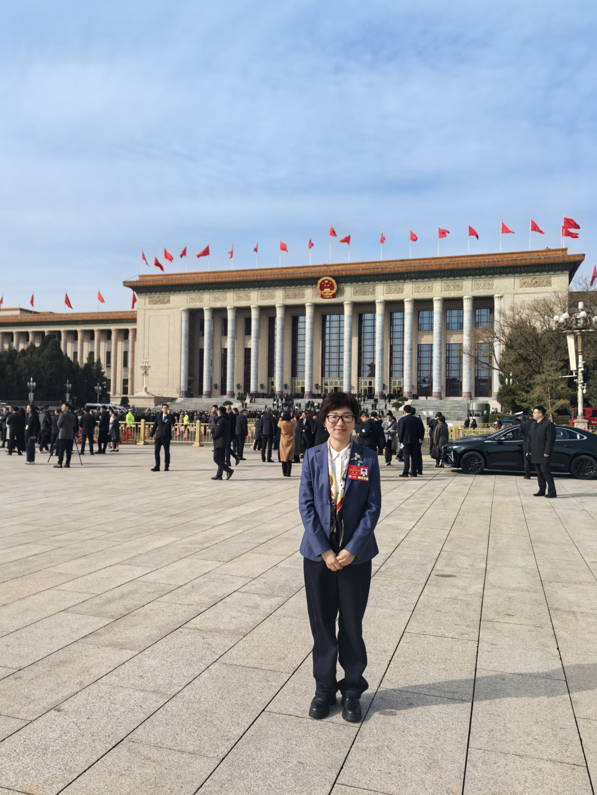 王洁代表在北京人民大会堂前。 王洁 提供