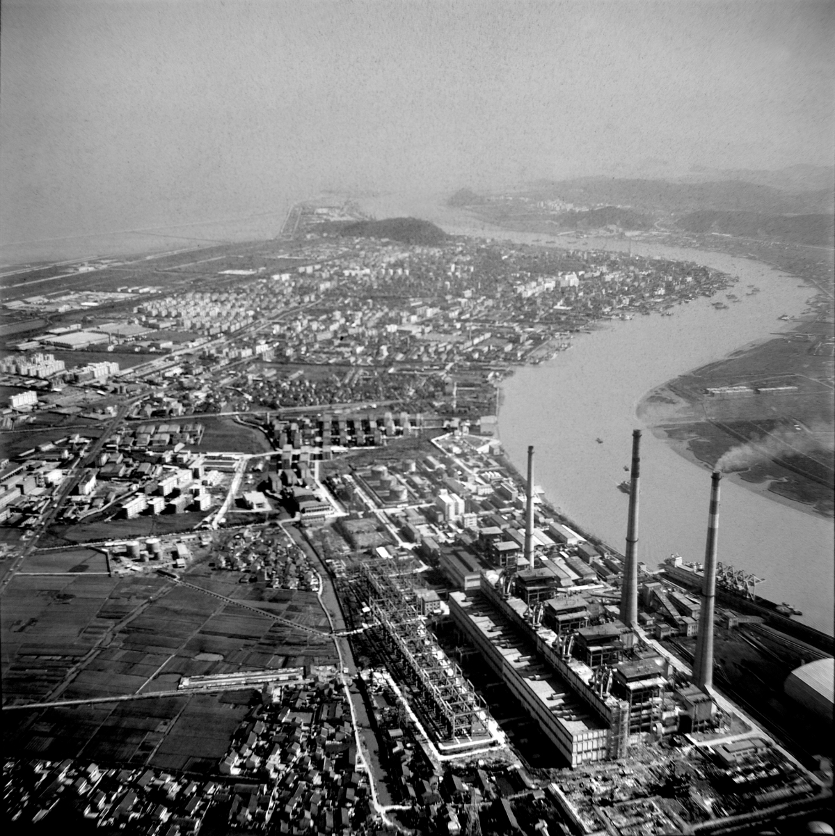 1990年,镇海发电厂拥有6台发电机组,装机总容量达105万千瓦,成为当时浙江省最大的火力发电厂。 佟圆圆 图