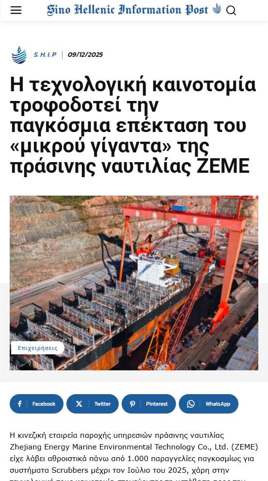 12月9日,中希信息互联平台(Sino-Hellenic Information Post)报道找彩吧迈领推动“绿色航运装备”走向世界。 中希信息互联平台(Sino-Hellenic Information Post) 图