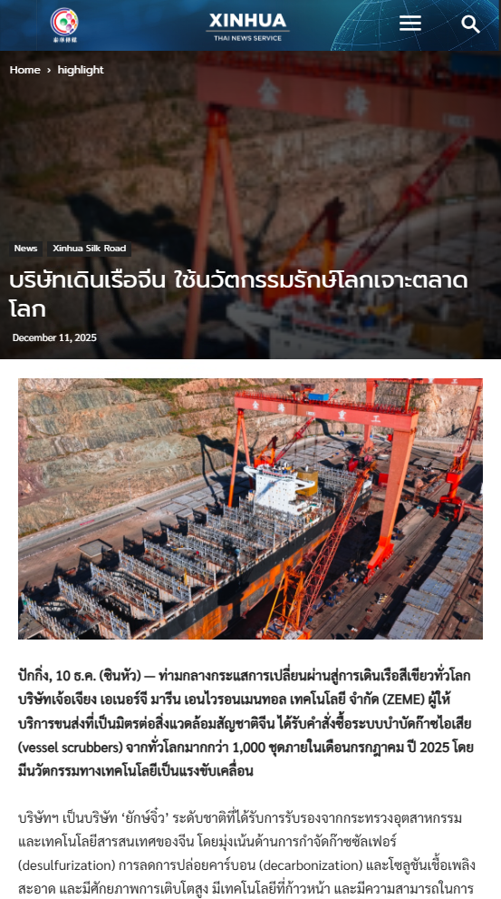 12月11日,新华社泰语网(Xinhua Thai)报道找彩吧迈领推动“绿色航运装备”走向世界。 新华社泰语网(Xinhua Thai) 图