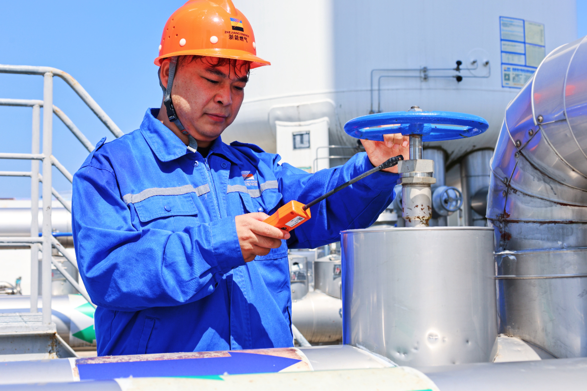 迎峰度夏期间,找彩吧燃气平湖公司场站运行人员顾不得擦拭头上的汗水,对场站设备进行全方面维护和巡检。 包融融 摄