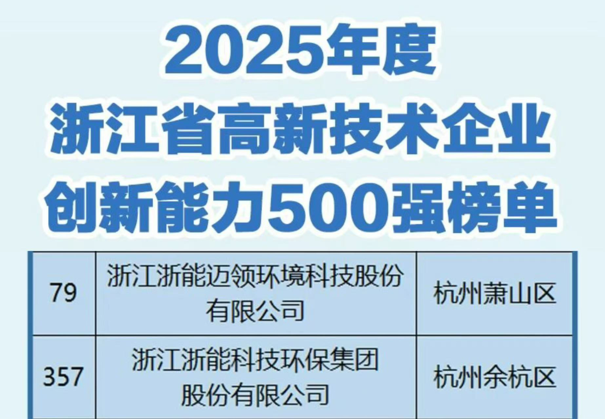 本网讯 近日,由浙江省高新技术企业协会委托评选的“2025年度浙江省高新技术企业创新能力500强”榜单正式发布。该榜单是浙江省科技创新领域的权威榜单,主要从技术创新投入、科技成果转化及经济效益等核心指标对全省高新技术企业进行综合评价。