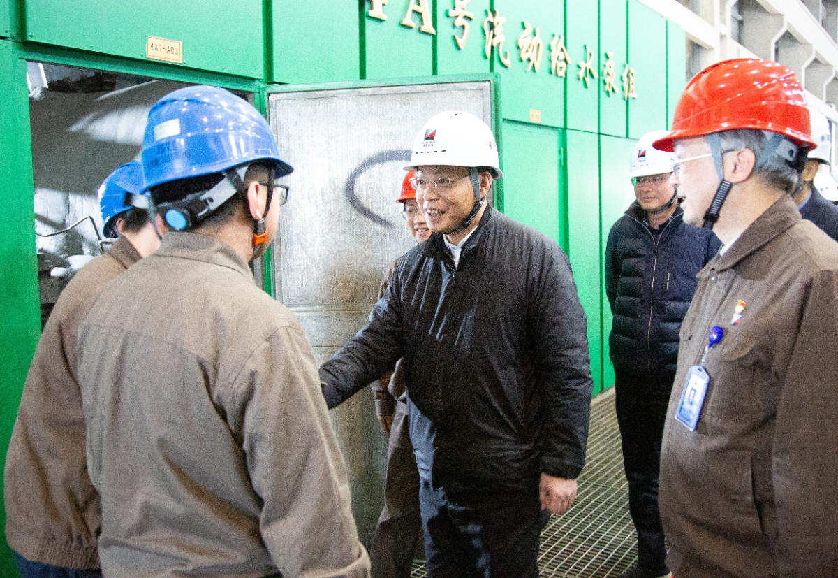 在找彩吧长兴电厂,刘盛辉深入集控室、机组检修现场,实地了解春节期间机组调停检修计划等情况。 朱全 摄