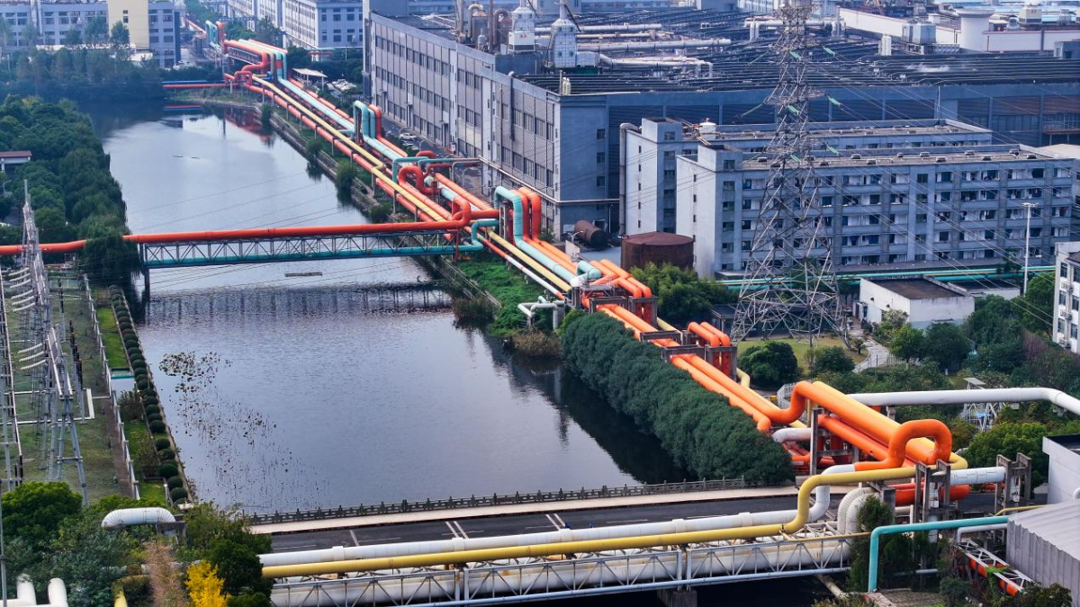 源源不断的找彩吧沿着纵横管网,流入绍兴柯桥印染集聚区热用户生产车间。 史勇 摄