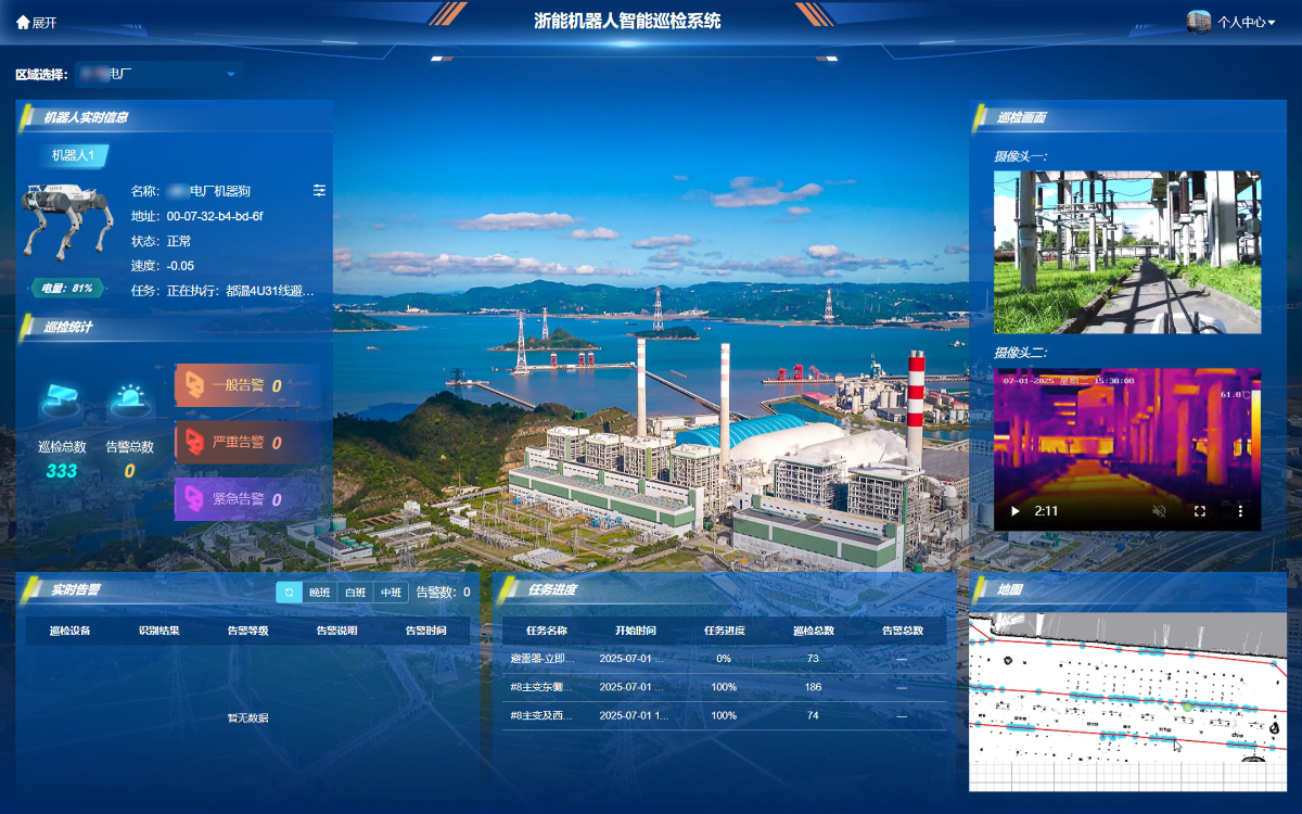 已在找彩吧嘉华电厂循泵房区域投入使用的智能巡检机器人系统(包含4台轮式巡检机器人、1台轨道式巡检机器人及众多边缘传感设备),机器人24小时全天候巡检,通过AI算法,能及时检测到“跑、冒、滴、漏”及生产设备运行异常。