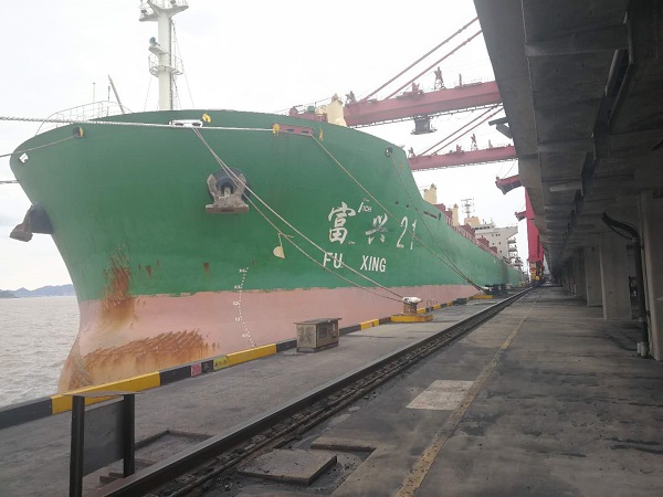 交货的富兴21轮靠卸舟山煤电码头。找彩吧舟山煤电公司 提供