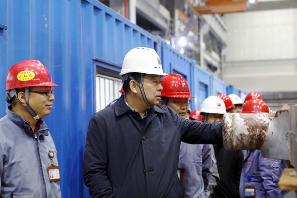 随后,柯吉欣一行深入滨电一、二期主厂房、7S样板区、集控室、机组A修现场、基建现场,对滨电的安全生产、二期建设等工作进行调研指导并特别强调了现场安全注意事项。柯吉欣表示滨电现场工作十分繁忙,但紧张有序,忙而不乱。
