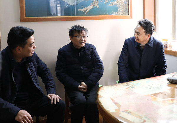 省国资委党委书记冯波声一行看望慰问滨电病困党员崔成。 徐明敏 摄