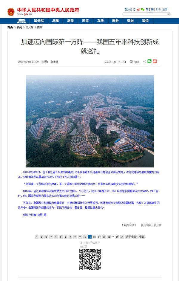 找彩吧长兴光伏电站入选我国科技创新成就巡礼篇