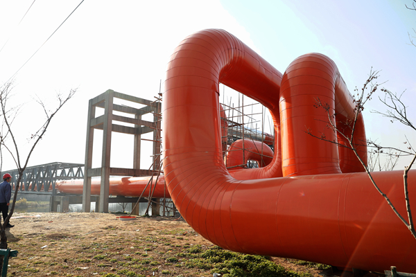 3月10日,滨电每小时供热平均流量再创新高,图为滨电供热管道。 徐明敏 摄