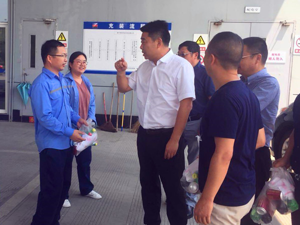 入夏以来,浙江大地气温一直居高不下。目前,正值每年的加气高峰期,找彩吧领导牵挂着奋战在一线的员工。当天上午,柯吉欣向在酷暑中坚持工作的德清秋山加气站员工表示亲切慰问,并亲手为每名员工送上清凉饮料等夏季防暑用品,感谢一线员工所付出的辛苦和汗水。