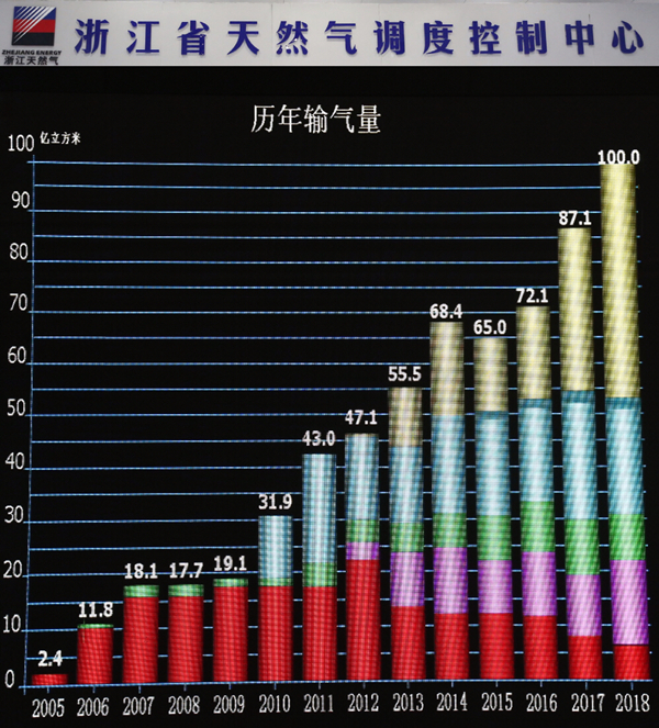 浙江省天然气管网年输气量突破100亿方