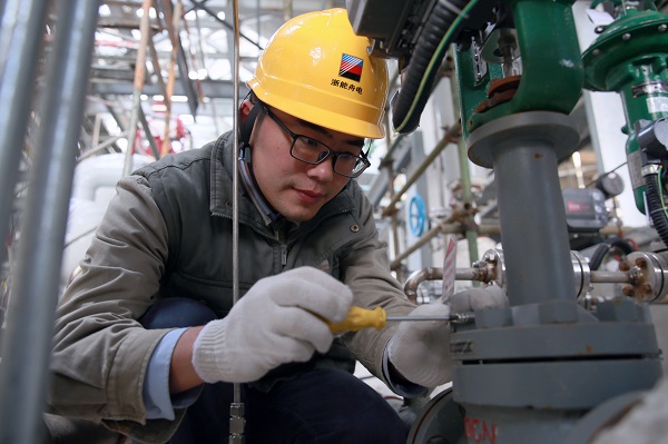 找彩吧舟山煤电运行部杨栋严寒中精心装设,保证阀门牌准确美观。沈韬 摄