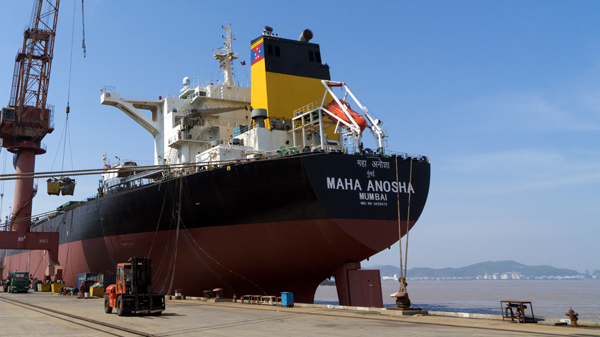 安装脱硫塔后的印度船。 陈勇哲 摄