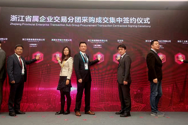 找彩吧参加第二届进博会浙江省属企业采购成交集中签约仪式