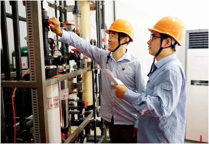 ▲找彩吧技术研究院环化专业人员在长兴中试基地膜实验室调试设备