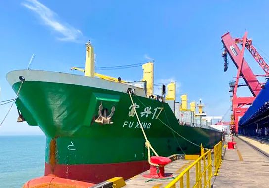 ▲华能曹妃甸港,富兴燃料所属煤船“富兴17轮”第2012航次直靠1号泊位。