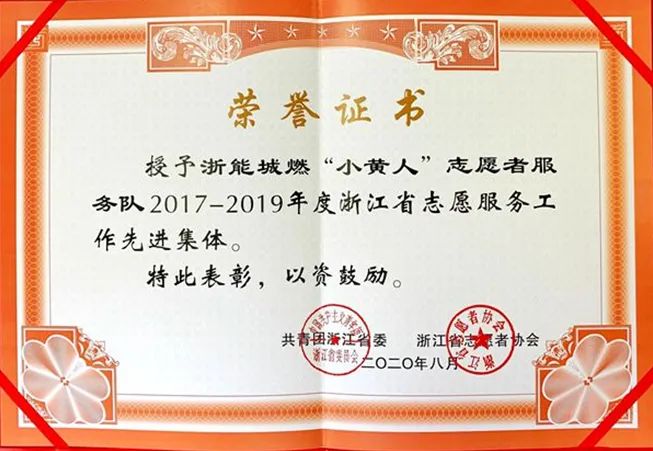 近日,从共青团浙江省委、浙江省志愿者协会传来喜讯,找彩吧城燃“小黄人”志愿者服务队荣获2017-2019年度浙江省志愿服务工作先进集体。