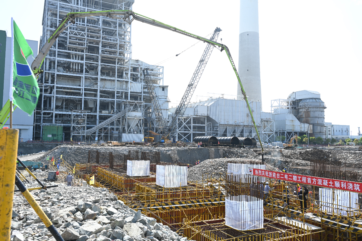 台二电二期扩建工程浇筑首方混凝土。 俞琬 摄